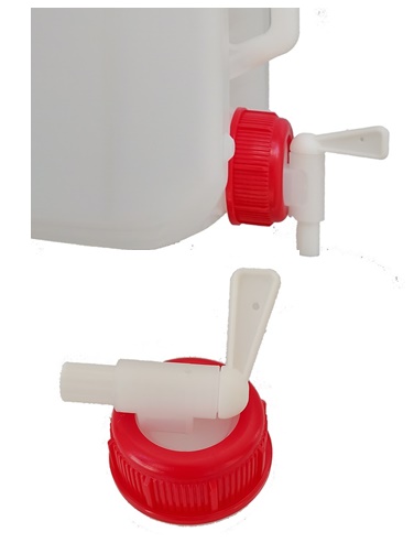 Der Auslaufhahn (DIN RD 45 Gewinde) aus HDPE mit Dichtung ist geeignet für unsere leeren sowie gefüllten Kanister von Quantum EM Aktiv, EM Aktiv Hell und Quantum Aktiv Knoblauch Chili in allen Größen. Der Auslaufhahn passt auch auf andere Kanister mit DIN 45 Norm.